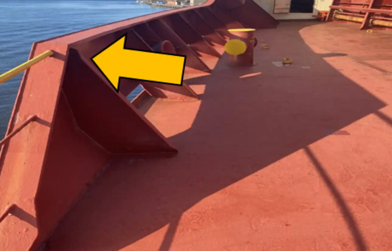 Тест охватывает английскую терминологию, связанную с устройством судна: части корпуса и надстройки, швартовное и якорное оборудование, рулевое и пропульсивное устройство, жилые и рабочие помещения, а также основные измерения судна (LOA, LBP, draft, freeboard). Включает задания на выбор правильных терминов, предлогов, синонимов и распознавание элементов судна по изображениям.